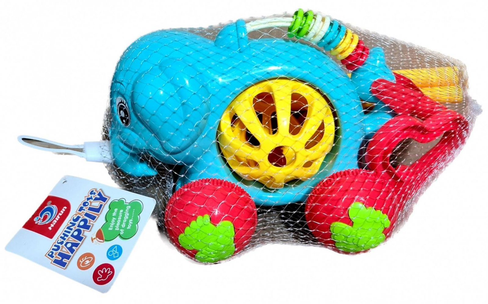 Jucarie de impins din plastic, cu maner corespunzator, care va avea rol de dezvoltare a capacitatii de conducere a unui obiect. Melcul cu sunatori, jucarie de impins, poate deveni partenerul copiilor la deplasarile pe jos, la plimbari, la jocuri in curte sau in parcuri, fiind functionala mai ales in exterior, dar nu numai.
