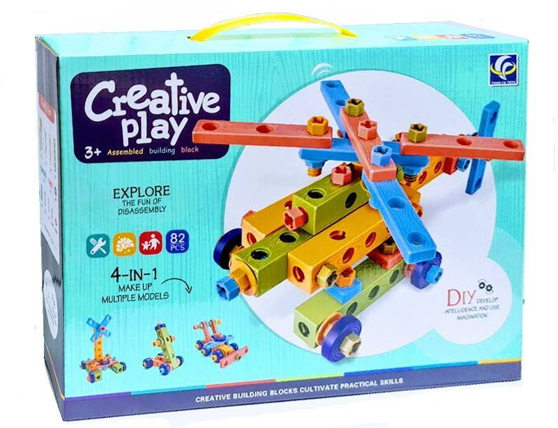joc de constructie cu suruburi si piulite, 4 in 1, elicopter, creative play, nivel de dificultate mediu, 82 piese