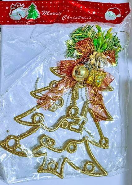 Decoratiune Craciun pentru usa, brad auriu, 27 cm
