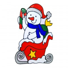 Sticker de Craciun refolosibil, din silicon, om de zapada cu sanie, 35 cm