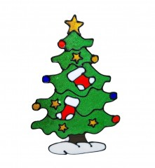 Sticker de Craciun refolosibil, din silicon, brad impodobit, 35 cm