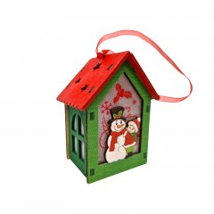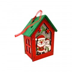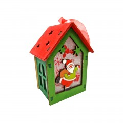 Căsuța este prevăzută cu o panglică roșie pentru agățare, fiind ideală pentru a o pune în bradul de Crăciun, la fereastră, pe șemineu sau în aranjamente de sărbătoare. Este realizată din lemn natural vopsit, oferind un aspect rustic și autentic, perfect pentru iubitorii decorului tradițional de iarnă.