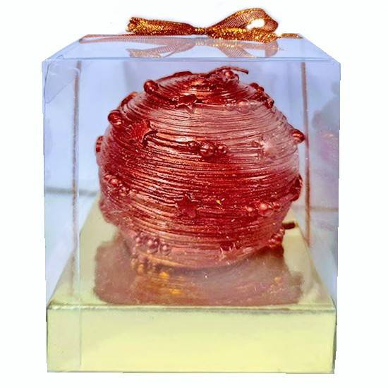 lumanare din ceara lucrata in filigran, cutie de cadou pentru Craciun, rosu