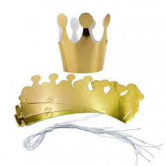 Coronita este realizata din carton auriu cu sclipici, are fanta de formare si orificii pentru elastic.