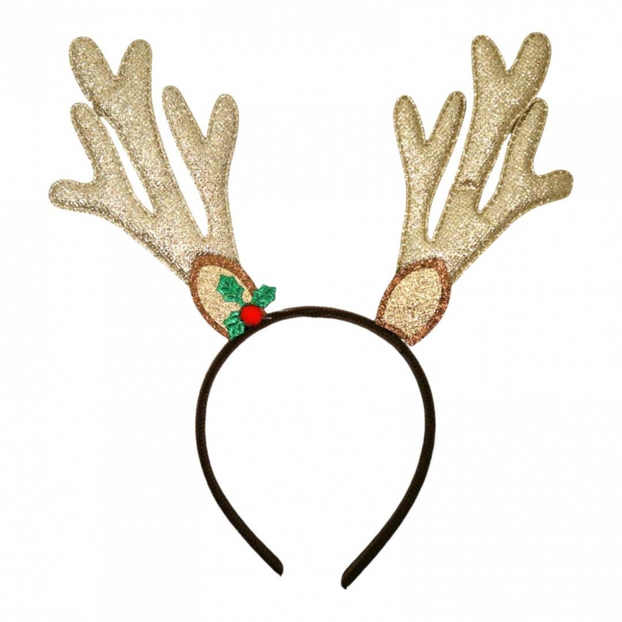 Cordeluta este realizata din plastic imbracat in material textil, cornitele de ren sunt din material cu glitter dublat.
