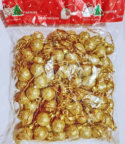 set 100 globuri sidefate cu snur, diametrul 1.5 cm, auriu