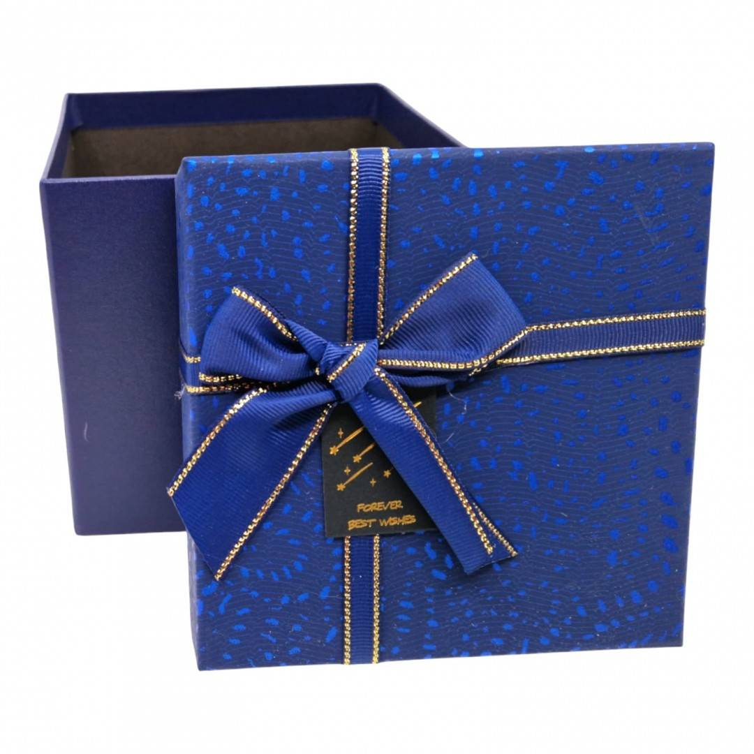 Cutie cadou patrata, cu fundita si snur, 13x13x12.5 cm, albastru