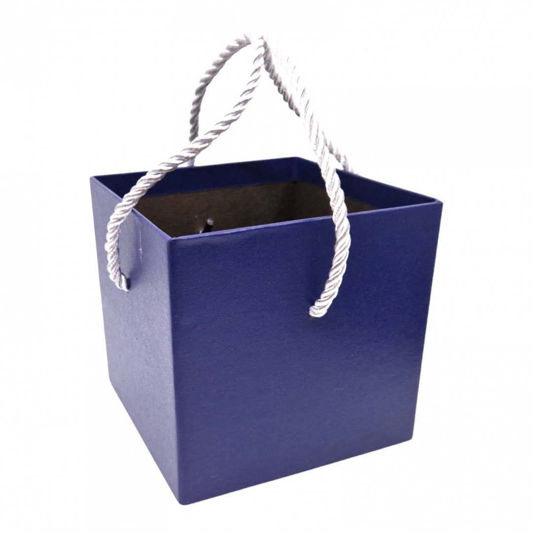 Este prevazuta cu doua snururi satinate. Cutia poate fi folosita cu sau fara manere, este perforata doar la partea interioara pentru introducerea snururilor. Se poate folosi pentru aranjamente de flori, buchete, trandafiri, cadouri, marturii, produse handmade decoratiuni si multe altele.