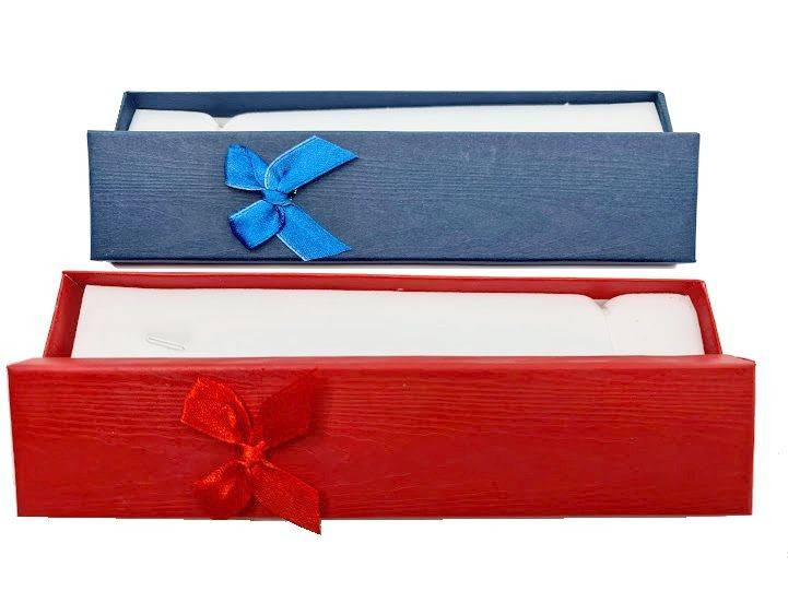 Cutia este realizata din carton mat usor embosat . Capacul este detasabil, realizat din carton, are o fundita din satin in ton cu cutia.