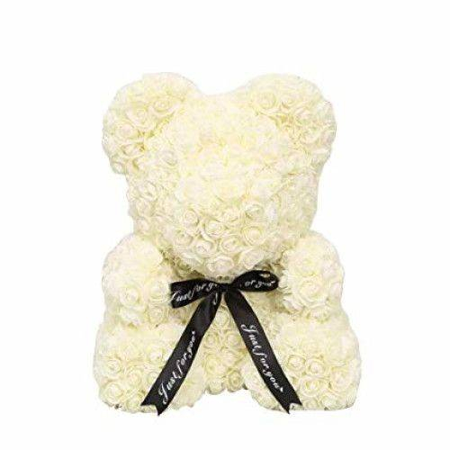 Aranjament Urs alb , Ursulet Decorat Manual Cu Trandafiri De Spuma, Teddy Bear 40 Cm