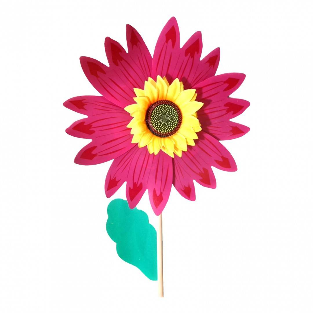 Morisca de vant Floarea Soarelui cu coada din lemn, diametru 40 cm, roz