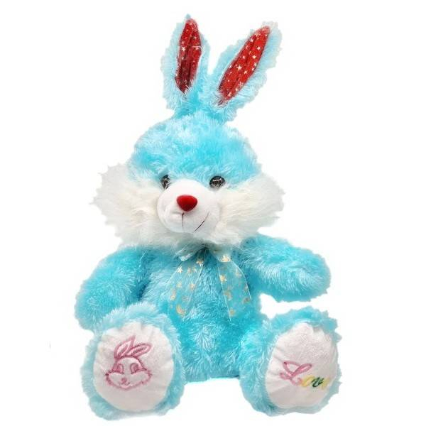 Iepurasul este realizat din blanita artificiala, ochisorii si nasucul sunt din plastic. Labutele sunt brodate in culori vii. Jucaria este muzicala, incepe sa cante in momentul in care este atinsa, i se aprind ochisorii.