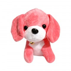Catelusul este realizat din material textil catifelat, cu detalii atent concepute. La gat are un clopotel care scoate sunete mecanice in momentul in care este miscat. Apasat usor pe cap, catelul latra. Jucaria este prevazuta cu un snur cu ventuza pentru a putea fi lipita de suprafete netede.