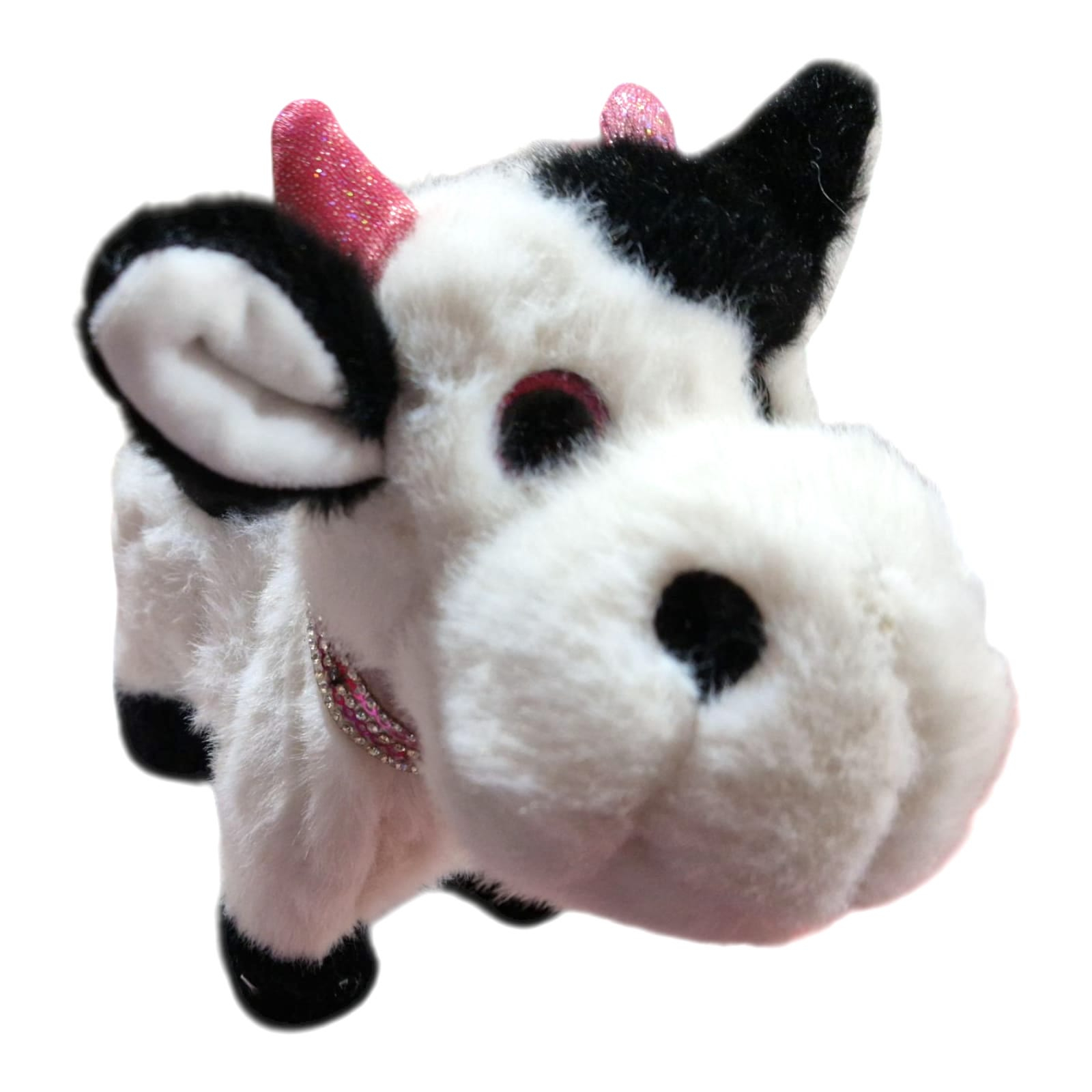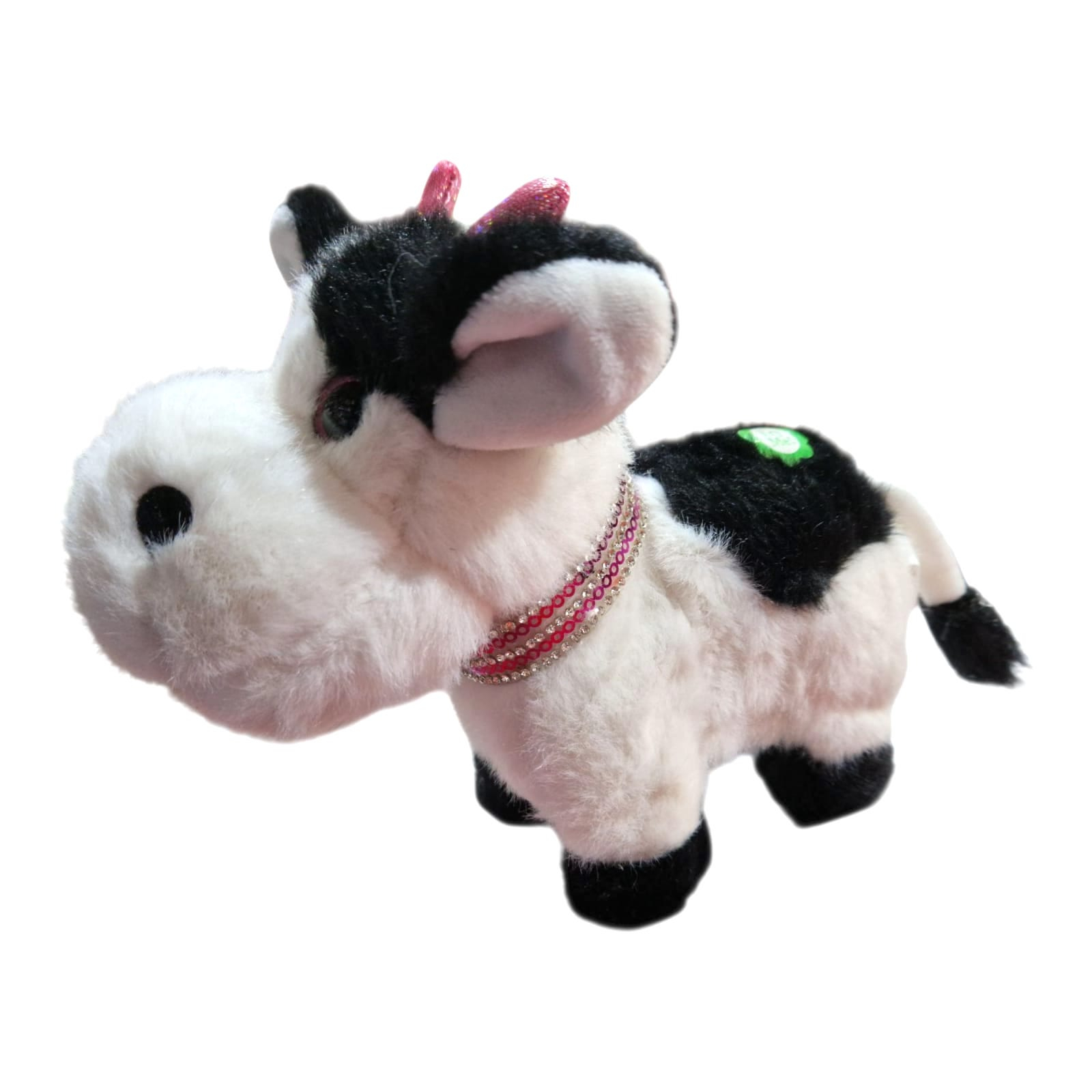 Transformă joaca celor mici într-o experiență plină de veselie cu această văcuță de pluș interactivă! Nu este doar moale și drăgălașă, ci are și un mecanism care îi permite să meargă singură și să scoată sunete realiste, făcând jocul mult mai captivant.