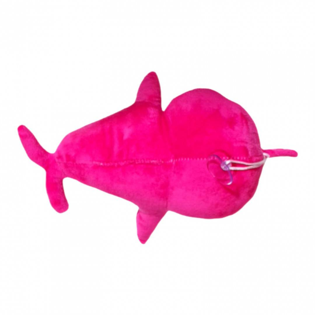 Indragitul personaj Baby Shark este realizat din material moale, calitativ, cu detalii precum ochisorii, nasucul, gura brodate. Jucaria este prevazuta cu un snur textil terminat cu ventuza.