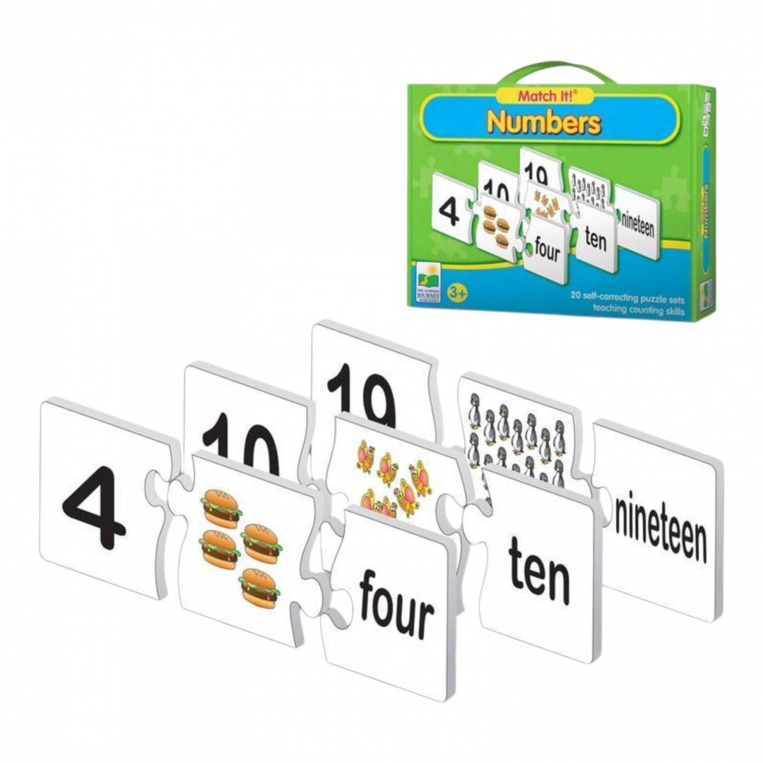 Un joc educativ ideal pentru cei mici, care îi ajută să învețe numerele într-un mod distractiv! Setul conține 20 de puzzle-uri auto-corective, fiecare format din trei piese ce ilustrează cifra, cantitatea și cuvântul corespunzător în limba engleză. Copiii pot potrivi piesele corect, dezvoltându-și abilitățile de numărare, recunoaștere vizuală și vocabularul de bază.