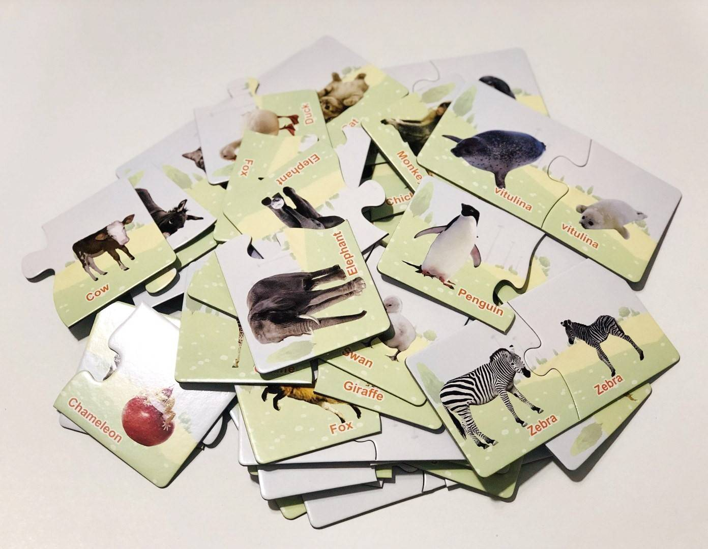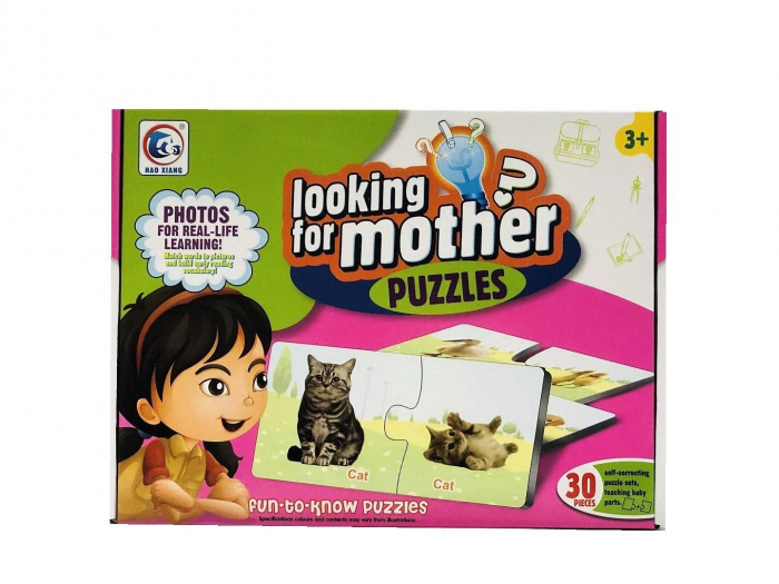 Setul contine 30 imagini care se compun din cate 2 piese puzzle. Asociaza puiul de animal cu mamica lui si descopera noi cuvinte in engleza. Setul are 60 piese de calitate superioara din carton, rigide si nu pot fi indoite.