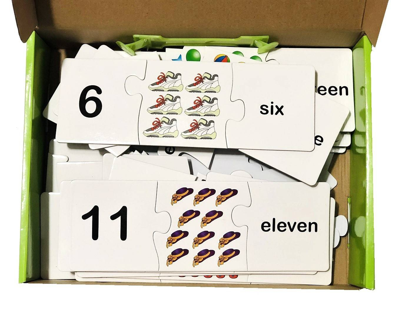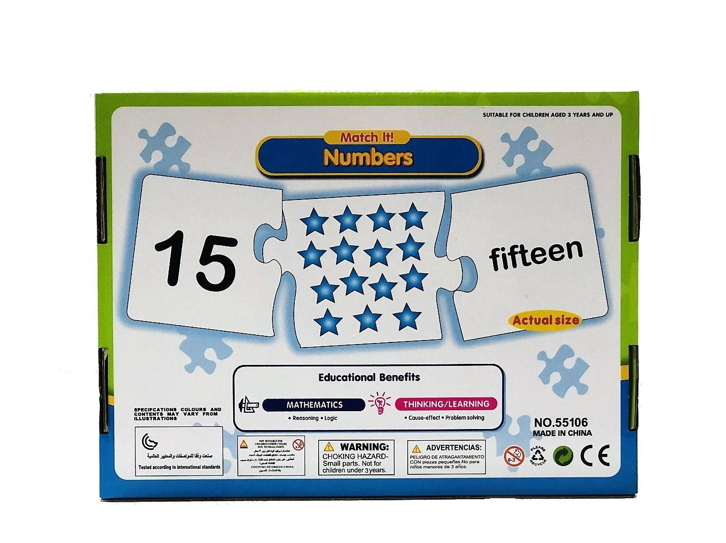 Setul contine numerele de la 1 la 20 care se compun din cate 3 piese puzzle (cifra, imagine, denumirea in engleza). Copilul trebuie sa asocieze numarul cu imaginea si cu denumirea in engleza pentru toate cifrele de la 1 la 20, ajutand la dezvoltarea vocabularului intr-un mod distractiv. Jocul are 60 piese cartonate tip puzzle de calitate superioara.