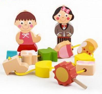 joc de insirat, snuruit cu piese din lemn 3D, cei doi copilasi