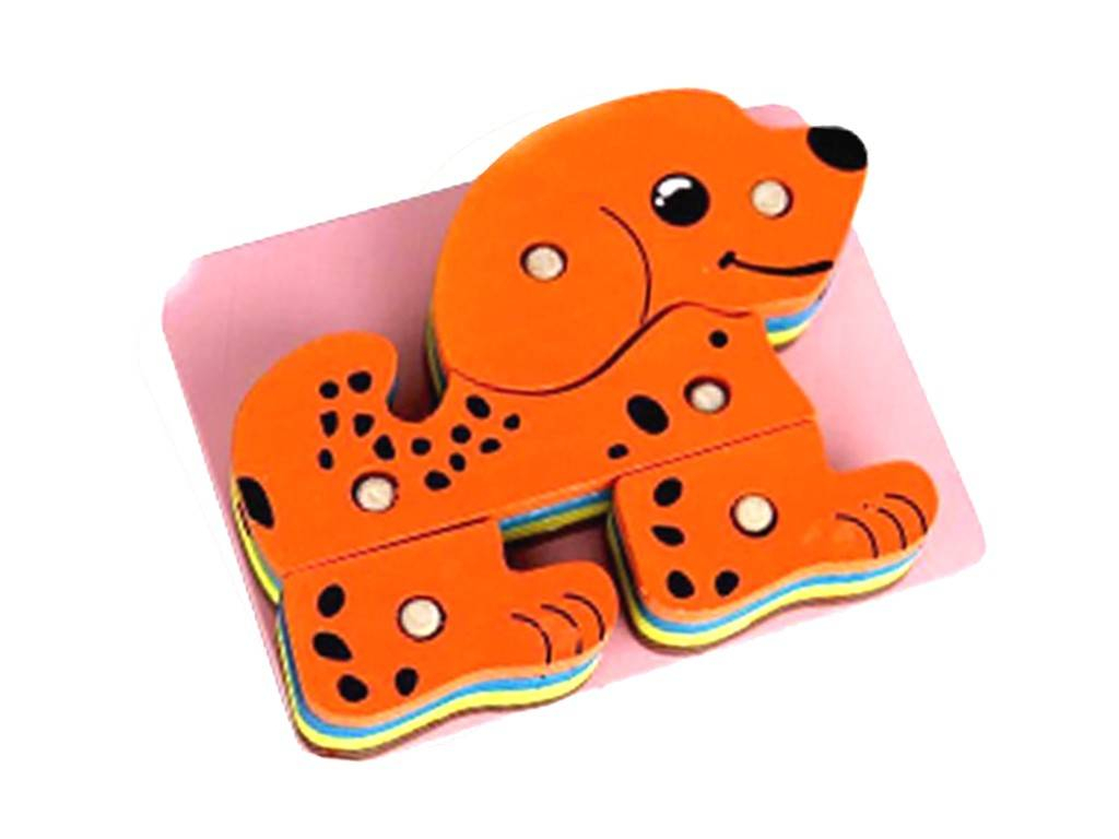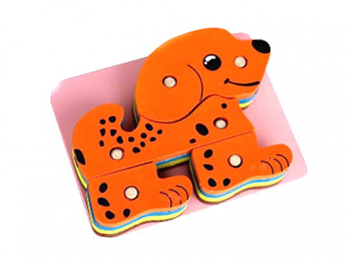 Jocul combina un sortator de forme cu un puzzle cu grad mic de complexitate. Consta intr-o placa din lemn pe care sunt prinse 6 tije . Fiecare catel este realizat din patru piese prevazute cu orificii pentru tijele de pe placa. Se pot forma 4 catei de culori diferite sau se pot forma catei multicolori.