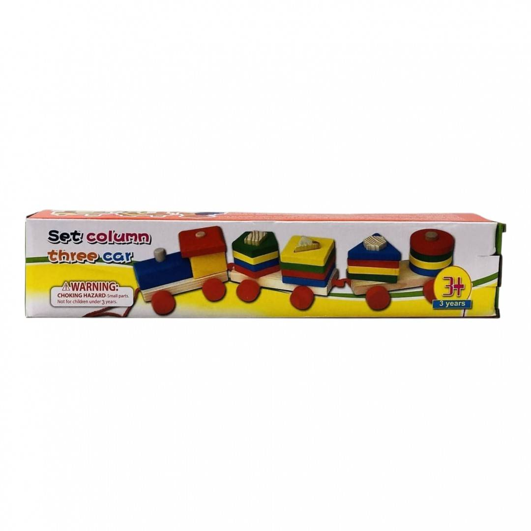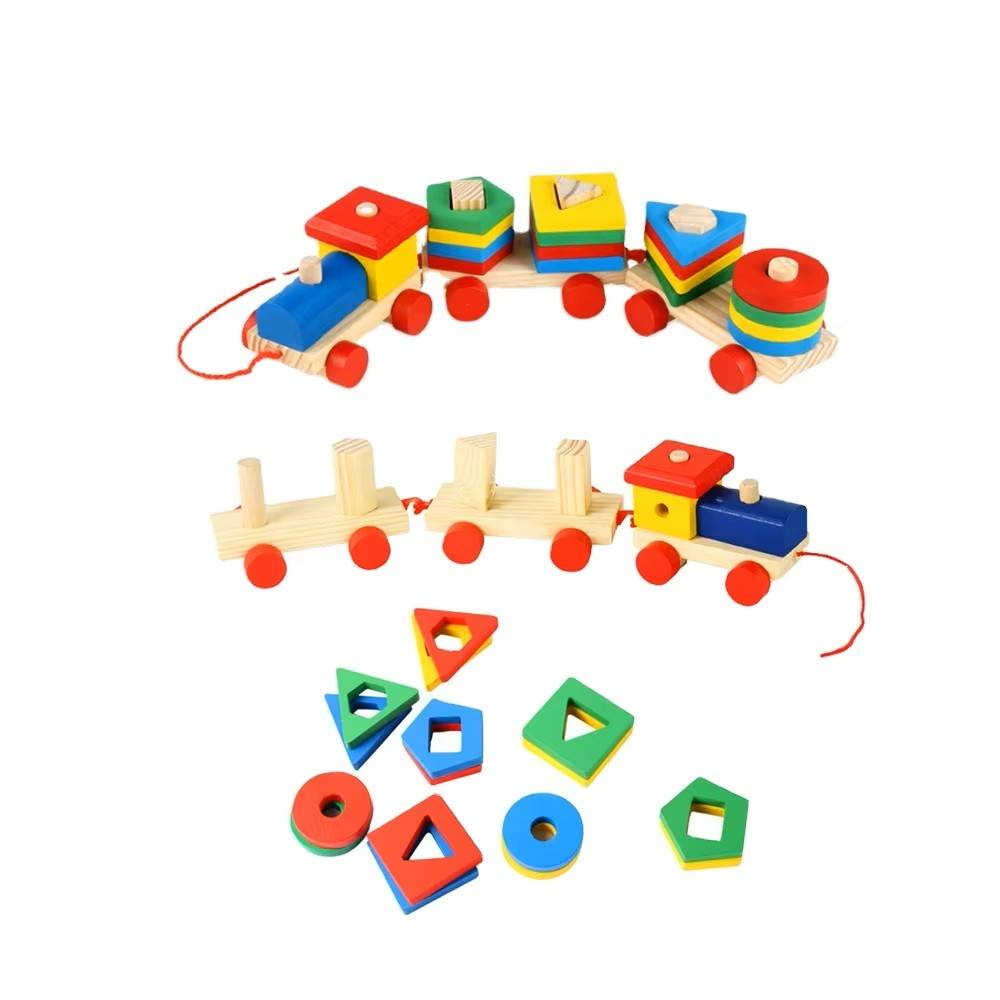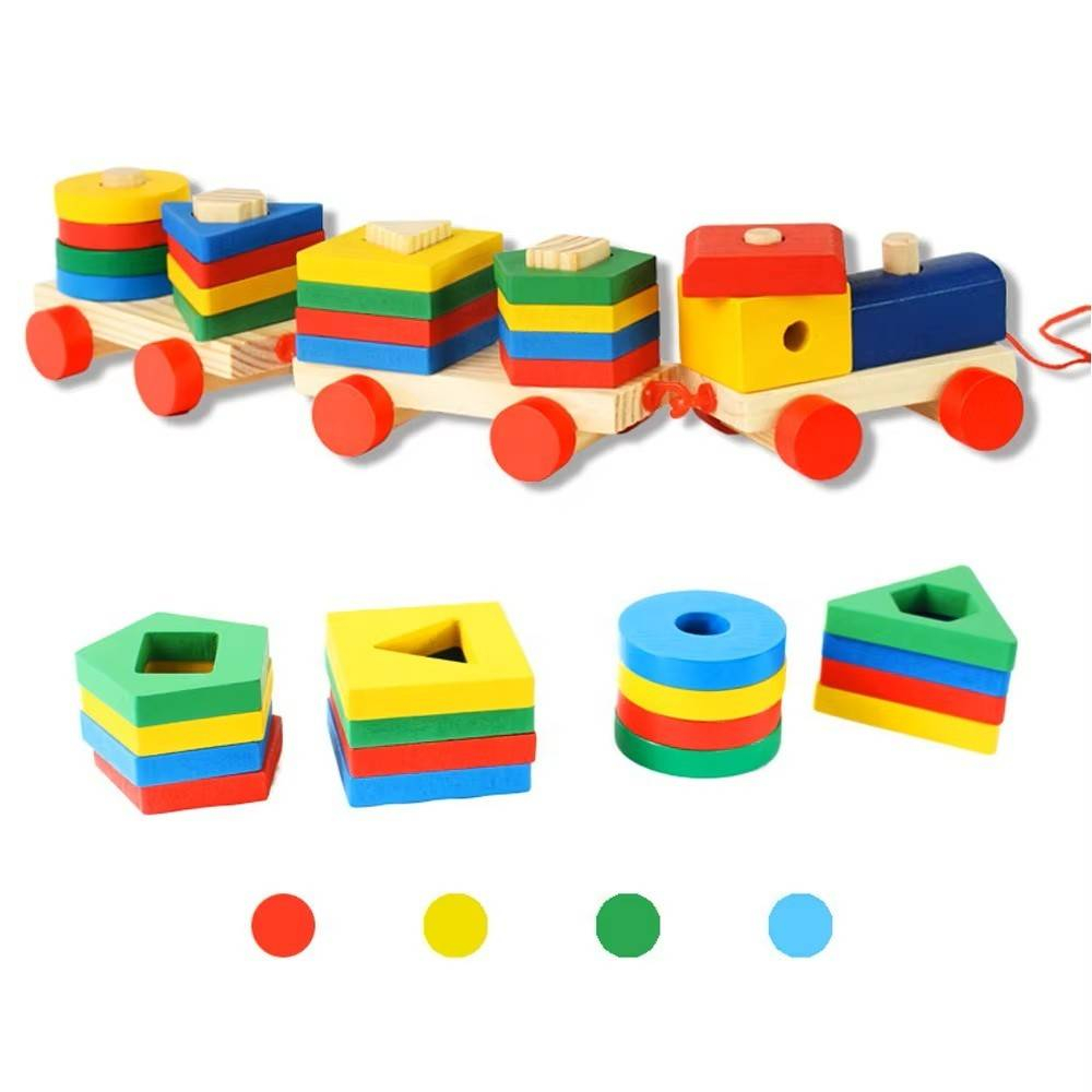 Atat pe locomotiva cat si pe cele doua vagoane se pot atasa cuburi din lemn de diferite forme geometrice. Trenuletul se comporta ca un sortator de forme. Este de ajutor in dezvoltarea gandirii, coordonarii ochi-mana si dezvoltarea motricitatii fine. Cu ajutorul acestui joc copilasul poate invata intr-un mod placut culorile, formele geometrice, impartirea cuburilor pe grupuri de aceeasi culoare, forma sau marime.