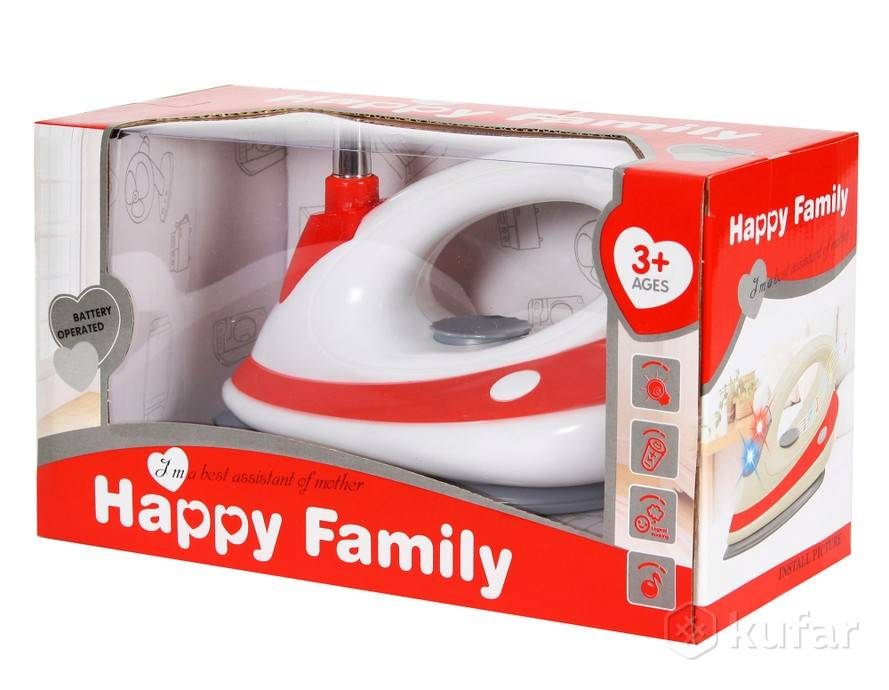 Fierul de calcat este realizat din plastic, are lumini, sunete si un buton pentru pulverizarea apei.