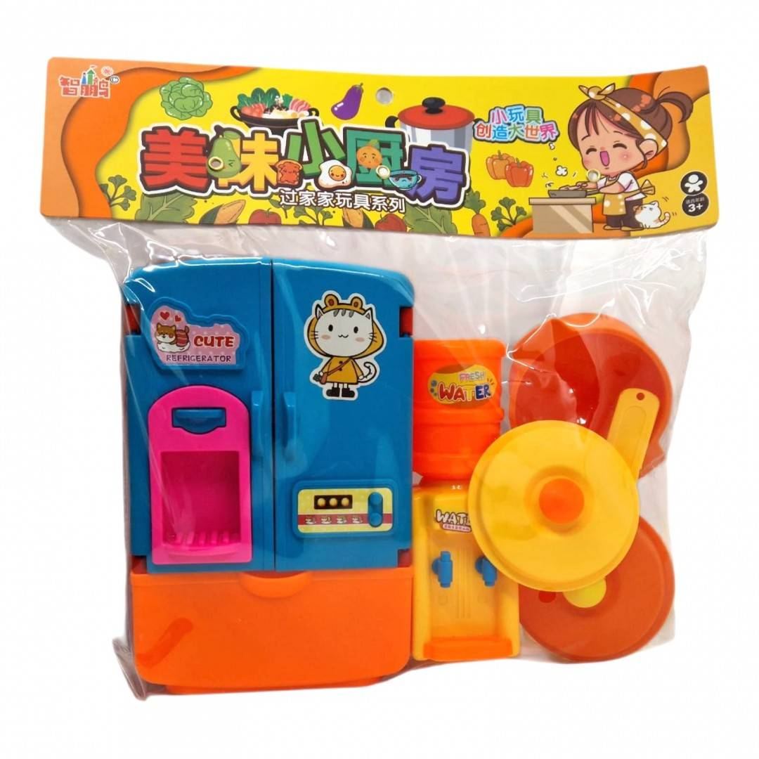 Micii bucătari se vor distra de minune cu acest set colorat de bucătărie! Setul conține un frigider adorabil, un dispenser de apă și accesorii de gătit – o cratiță, o tigaie și un coș pentru alimente. Fiecare piesă este realizată din plastic ușor și rezistent, perfect adaptat mâinilor copiilor.