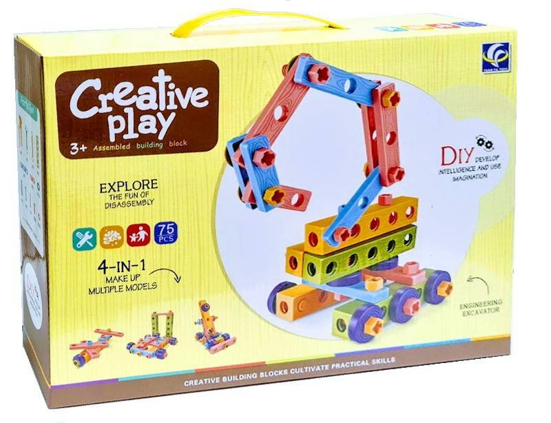 joc de constructie cu suruburi si piulite, 4 in 1, macara, creative play, nivel de dificultate mediu, 75 piese