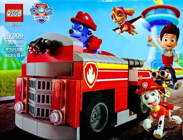Setul este inspirat din Paw patrol (Patrula catelusilor ),cuprinde 196 piese, instructiuni de montare si o figurina catel.