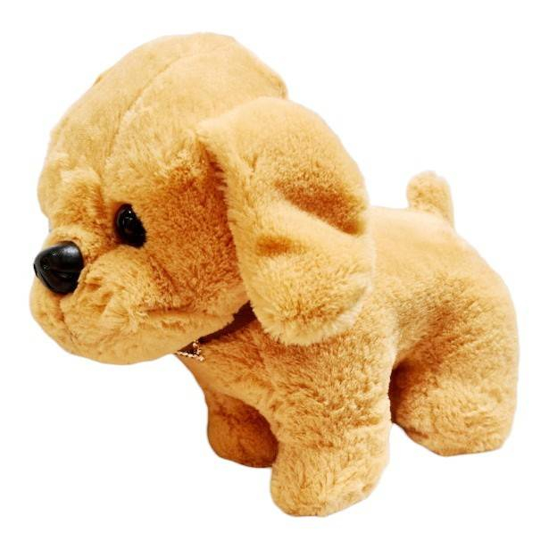 Cainele este confectionat din material textil plusat, are ochisori din plastic sticlosi iar la gat poarta cu eleganta o zgarda din piele ecologica cu pietre incrustate .