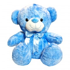 Ursuletul este realizat din material textil plusat, ochisorii rotunzi si migdalati sunt din plastic, gurita este realizata prin broderie iar la gat are o fundita satinata. Ursuletul are o stabilitate mare, pozitia acestuia este in sezut.