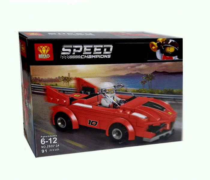 masina de curse rosie cu un omulet demontabil, 91 piese