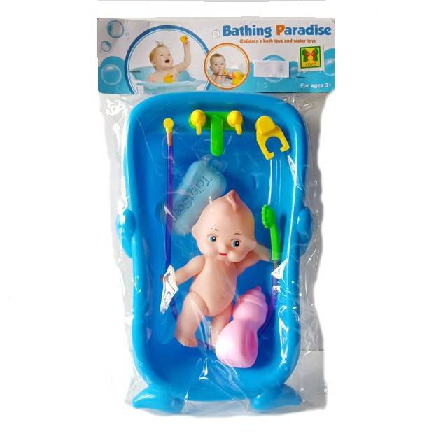 Bebelus cu accesorii pentru baie si cadita cu dus