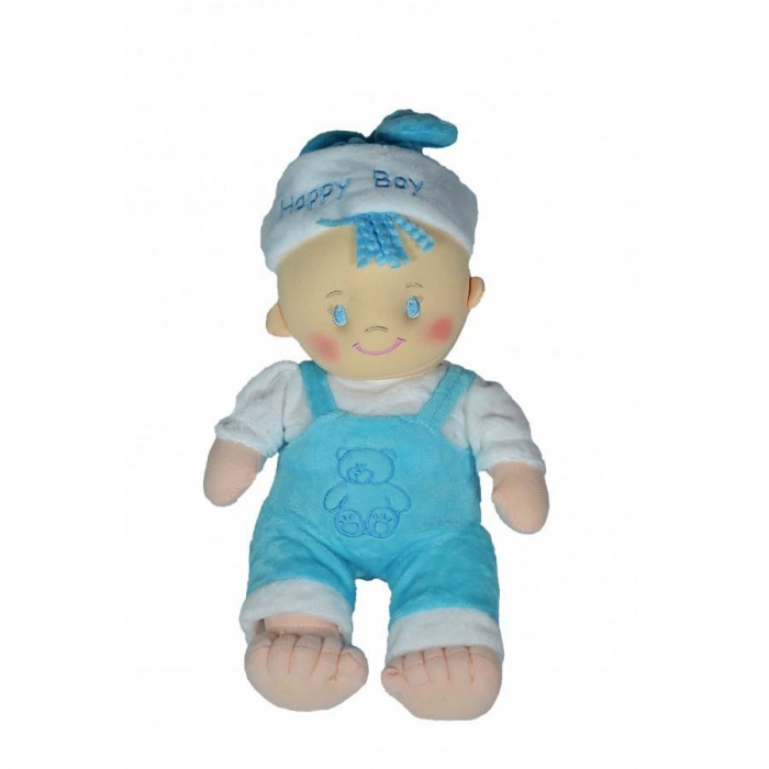 bebelus textil, Baby Boy papusa cu broderie ideala pentru decoratiuni botez, 22 cm, albastru