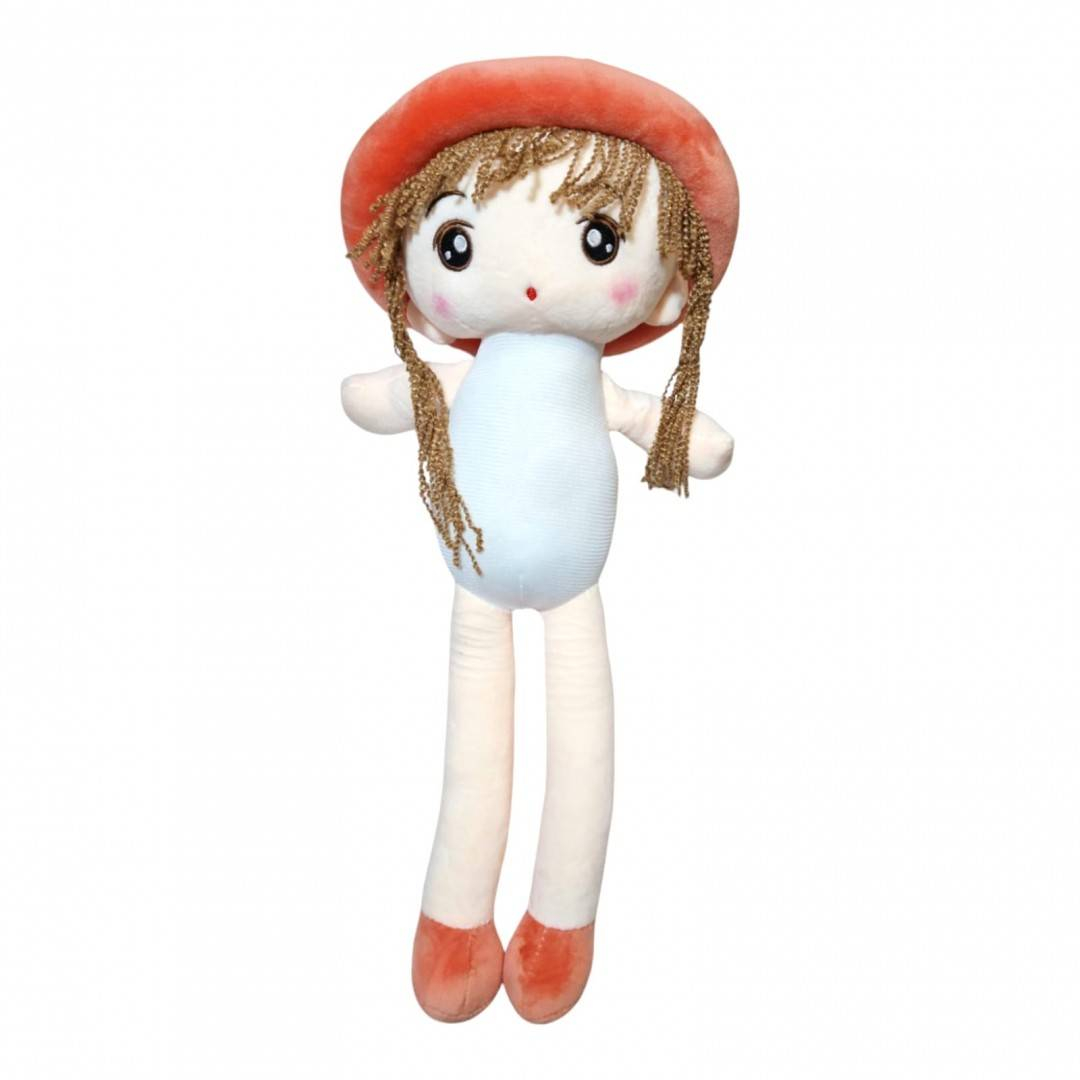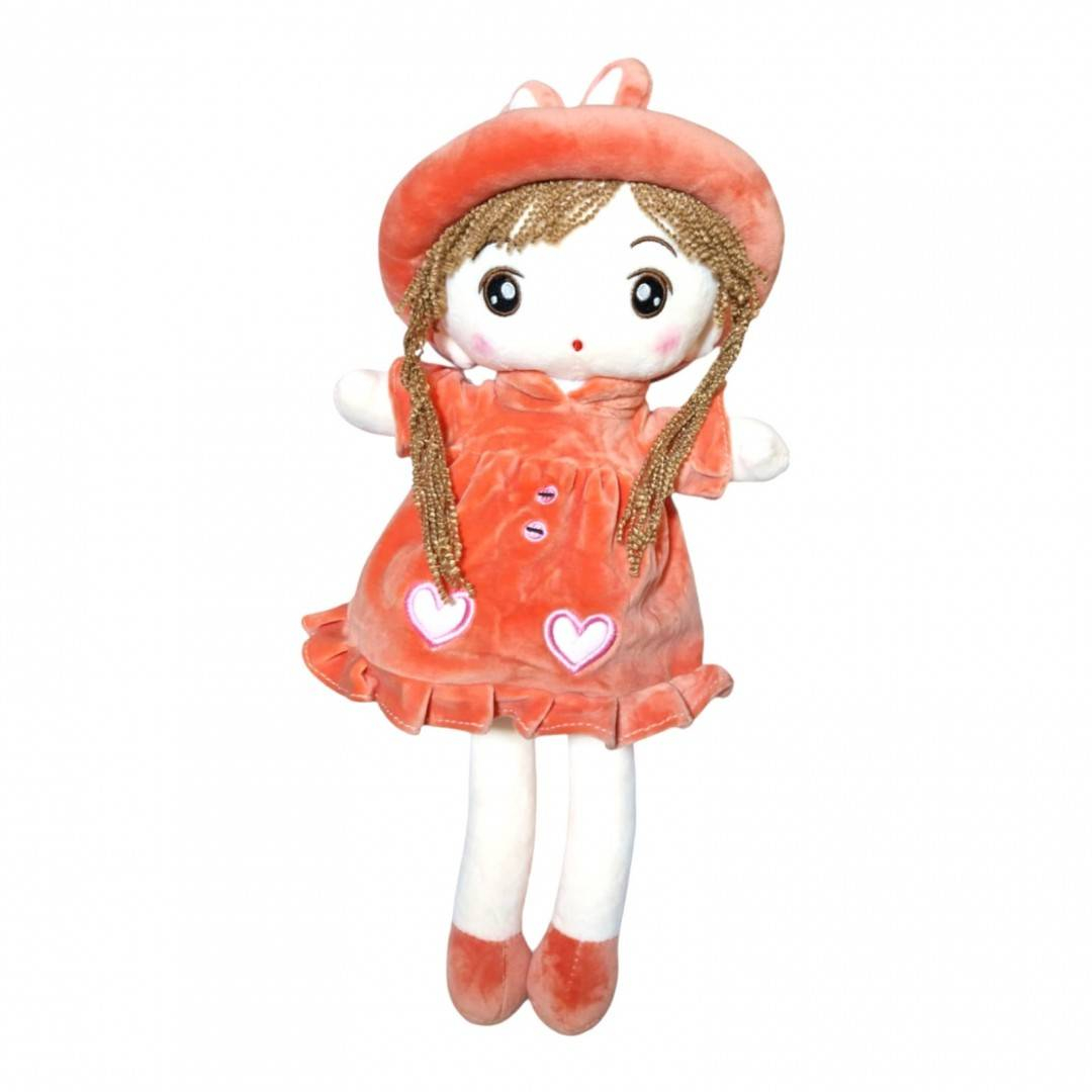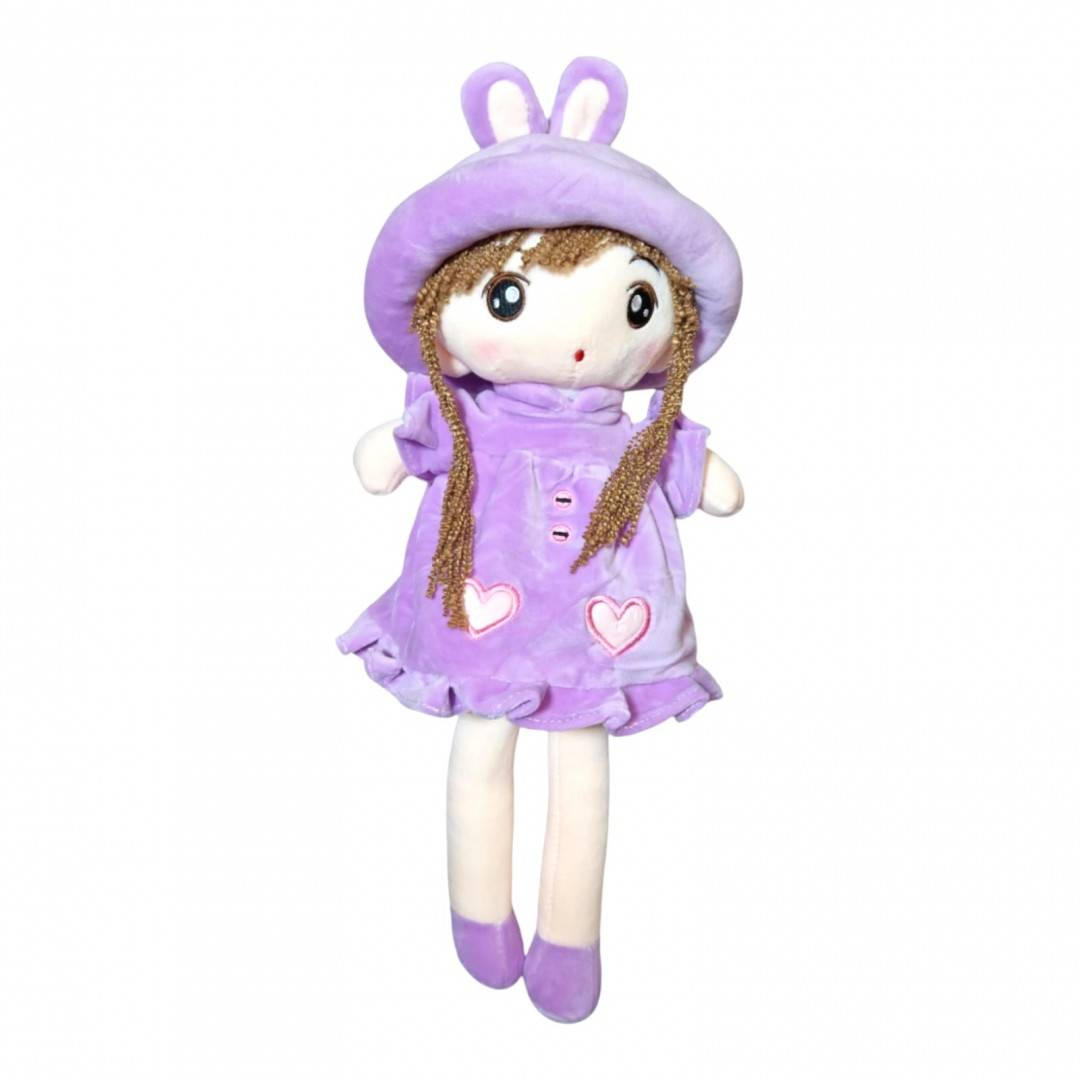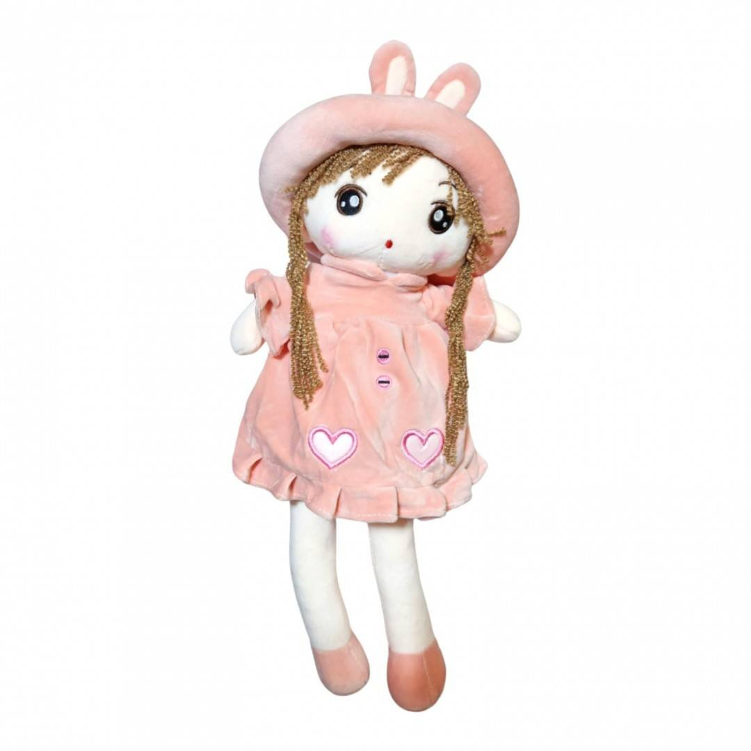 Papusa textila cu detalii brodate, palarie cu urechiuse, 48 cm