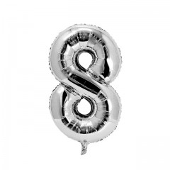Balon din folie metalizata, argintiu, 80 cm, cifra 8