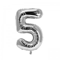 Balon din folie metalizata, argintiu, 80 cm, cifra 5