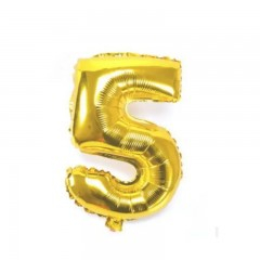 Balon din folie metalizata, auriu, 40 cm, cifra 5