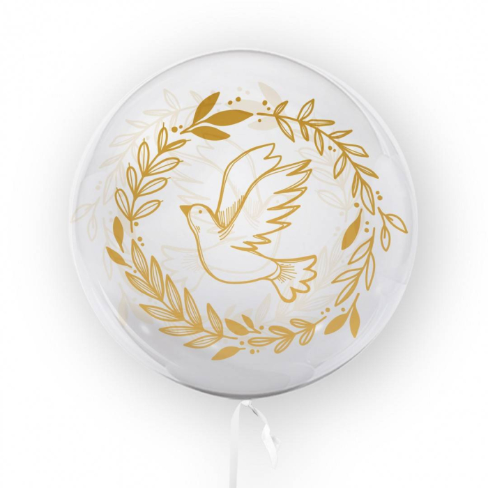 Balon transparent imprimat fata-verso, 45 cm, porumbel auriu