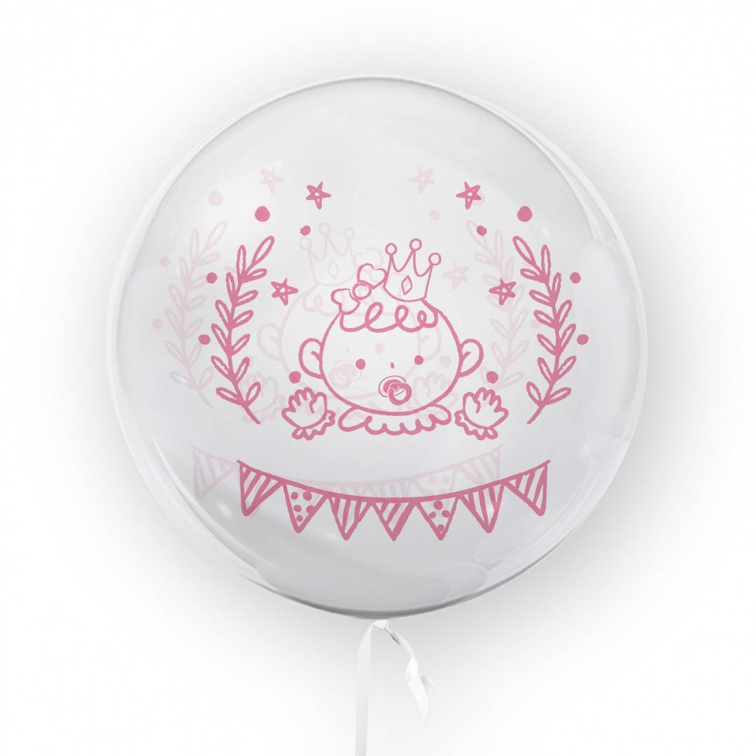 Balon transparent imprimat fata-verso, 45 cm, decor botez, bebe, roz