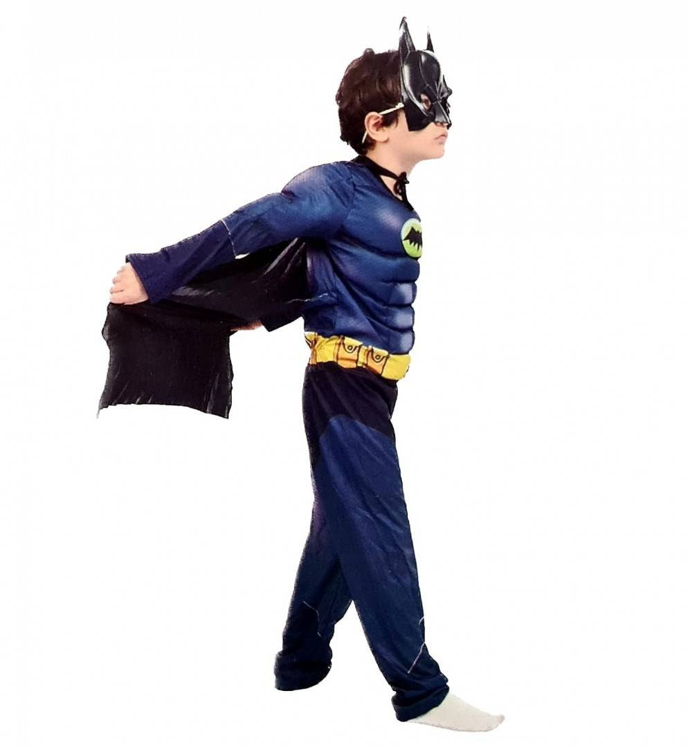 Costum carnaval cu muschi si pelerina neagra, 120-130 cm pentru fani Batman