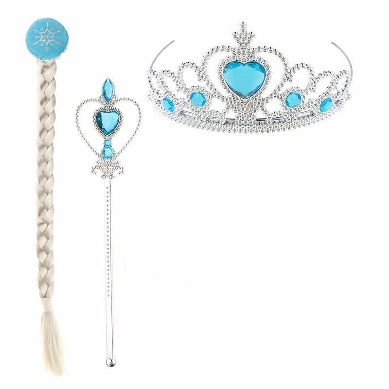Accesoriile vin in completarea costumatiei. Bentita este reglabila, codita este prinsa pe agrafa iar bagheta magica este accesorizata cu "diamante" in ton cu diadema.