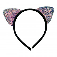 Bentita pentru copii, urechi de pisica cu minipaiete multicolore