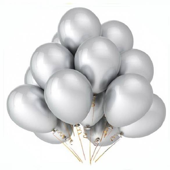 set 100 baloane latex, 25 cm, argintiu