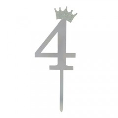 topper tort, decoratiune acrilica cu efect de oglinda, argintiu, 19 cm, cifra 4