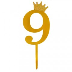 topper tort, decoratiune acrilica cu efect de oglinda, auriu, 19 cm, cifra 9