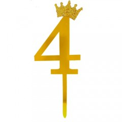 topper tort, decoratiune acrilica cu efect de oglinda, auriu, 19 cm, cifra 4