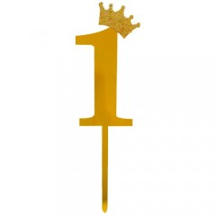 topper tort, decoratiune acrilica cu efect de oglinda, auriu, 19 cm, cifra 1