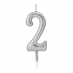lumanare tort argintie, 4.5 cm, cifra 2