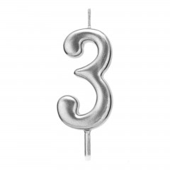 lumanare tort argintie, 4.5 cm, cifra 3